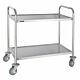 18/8-Edelstahl Wagen mit 2 Borden. Mit geräuschdämpfendem Material. Einfache Montage. Ladevermögen: 135kg.