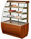 Kuchenverkaufstheke mit elektronischer Steuerung und digitaler Temperaturanzeige. Die Theke ist mit einem Sicherheitssystem ausgestattet, dass bei einer starken Verschmutzung des Kondensators oder einer Störung des Kondensatorsgebläses mit akustischem Alarm auf die Störung aufmerksam macht. Mit dieser Alarmeinrichtung ist ein hoher Schutz gegen Maschinenschaden gegeben und minimiert die Servicekosten. Ferner verfügt die Theke über einen gebogenen Glasaufbau, mit belüfteter Frontkippscheibe um ein beschlagen mit Feuchtigkeit zu vermeiden. Automatische Abtauung des Verdampfers und Tauwasserverdunstung. Ein separater Ein-/Ausschalter für die Warenbeleuchtung ist im Bedienboard integriert. Im Innenraumraum 3 gekühlte und beleuchtete Glasablagen welche höhen- und bis zu 5° neigungsverstellbar sind. Schublade zum entnehmen der Krümel in CNS. Mit den 4 höhenverstellbaren Füßen können kleine Bodenunebenheiten ausgeglichen werden.